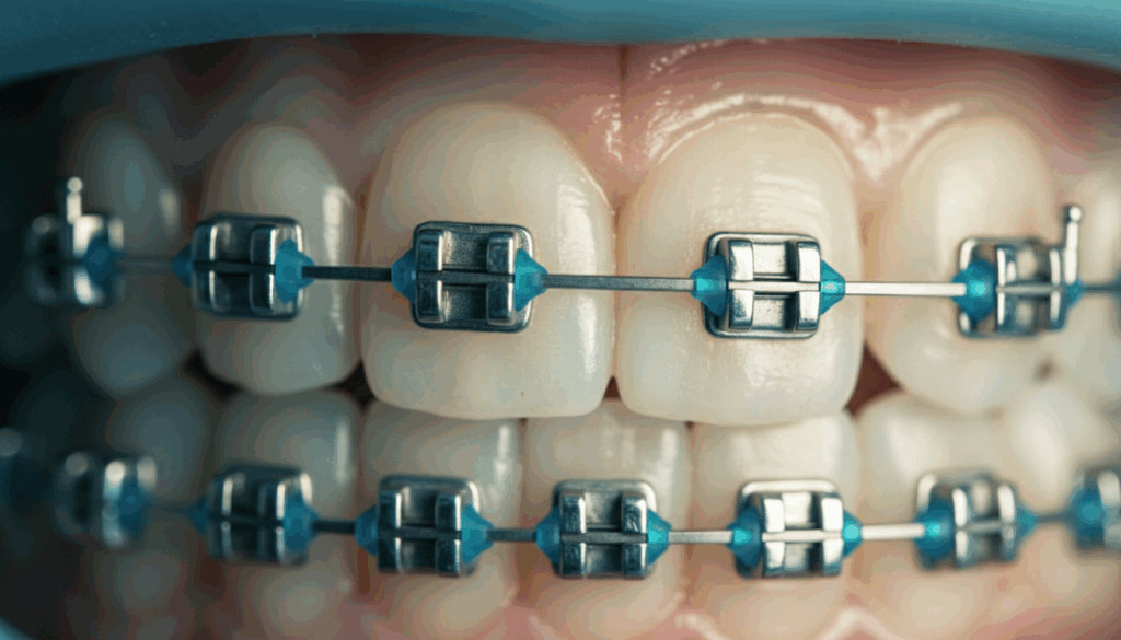 ワイヤー矯正(唇側マルチブラケット矯正)は、金属のワイヤーやブラケットの装置を歯の表面に固定する方法です。歯にブラケットという器具を取り付け、そこにワイヤーを通して歯列矯正を行います。